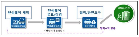 랜섬웨어는 악성코드가 삽입된 홈페이지 방문, 이메일 첨부파일, 보안취약점 등을 통해 감염되며, 감염 시 해커들은 시스템 또는 파일 암호화를 통해 이용을 제한하고 복구비용을 요구합니다. 또한 랜섬웨어 범죄조직은 더욱 분업화, 전문화되어 가고 있으며, 랜섬웨어로 부당이익을 얻고자 하는 수요가 증가함에 따라, 랜섬웨어를 제작·판매하는 ‘서비스형 랜섬웨어(RasS)’로 진화되고 있습니다.