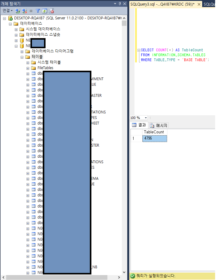 SETUP DB의 테이블 수량은 4796개 였습니다.