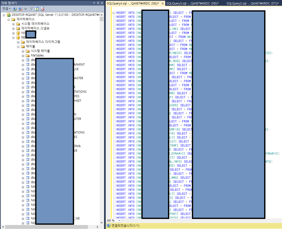 국내 1위 ERP 회사답게 보안이 적용된 DB구조라 재건(복구)된 DataBase의 직접 적용이 안되었습니다. 제조사와 협력하여 SETUP DB를 제공받았고 거기에 복구된 레코드(데이터)를 넣는 방식으로 진행하였습니다.